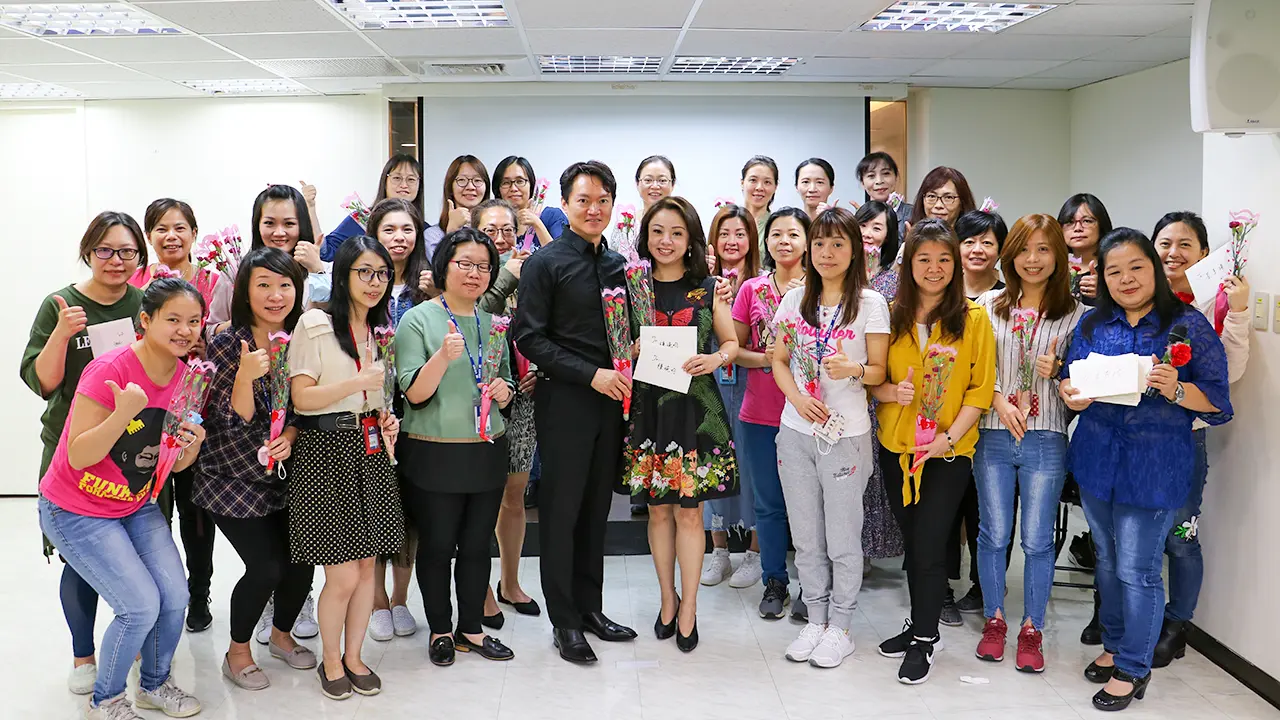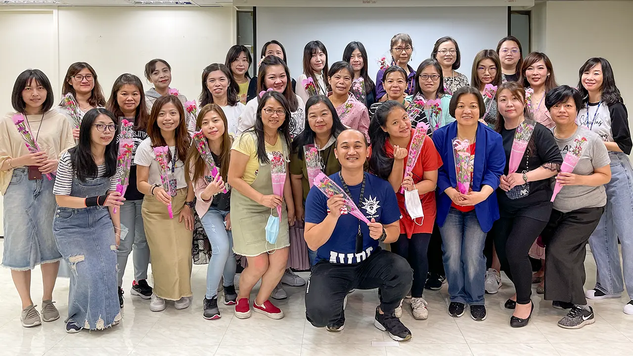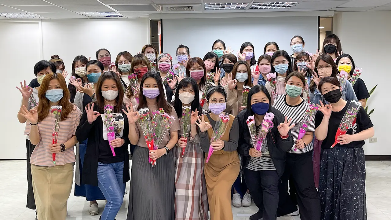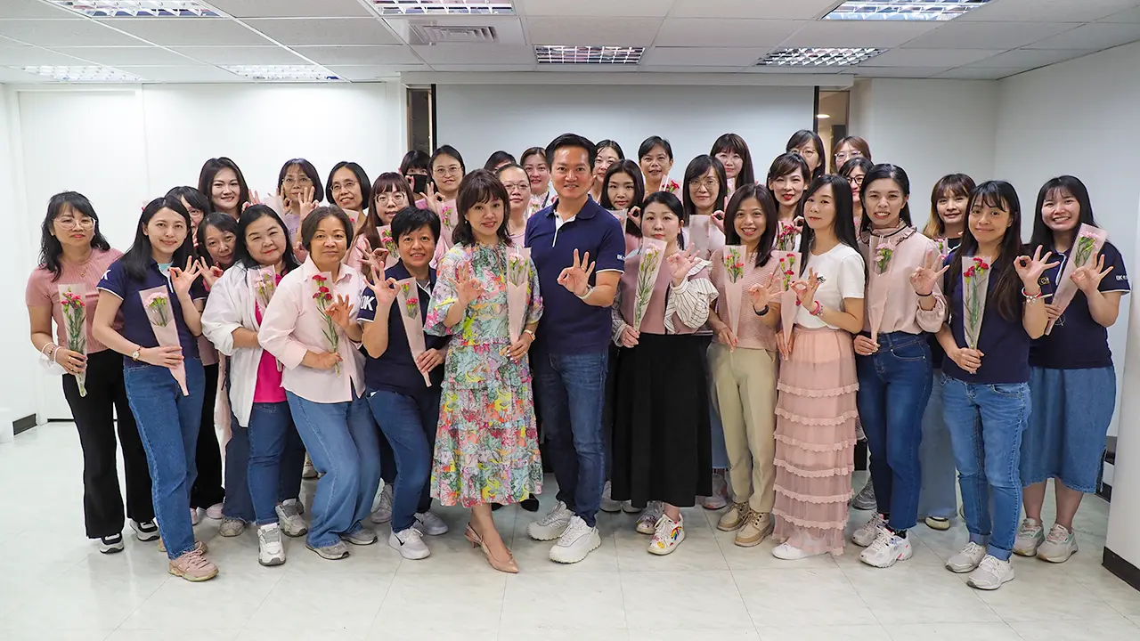 OK忠訓國際是一間重視家庭與親情的公司,同仁間彼此包容、互助,關心生活上的發生,因此一年一度的母親節,也是公司重要的活動,透過影片與活動分享,喚起每位同仁「感恩的心」,在這個充滿溫馨的日子裡,一束康乃馨,一張小卡片,獻給全天下偉大的媽媽們。